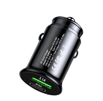 Cargador rápido PD portátil Cargador de 2 puertos 30W LED Puertos duales Cargador de automóvil con puerto tipo C
