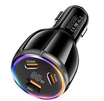 เครื่องชาร์จเร็ว90วัตต์3พอร์ต USB PD ที่ชาร์จในรถยนต์อะแดปเตอร์ประเภท-C ที่ชาร์จแบบเร็วในรถยนต์สำหรับ iPhone 14 15 pro/max Samsung