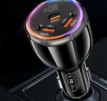 พอร์ตชาร์จเร็ว90W หลายพอร์ตชาร์จในรถยนต์2USB + Type C ที่ชาร์จในรถ PD ชาร์จเร็วสุดๆชาร์จในรถ USB-C